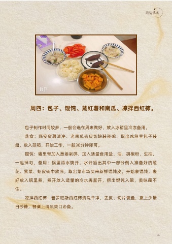 周四:包子、餛飩、蒸紅薯和南瓜、涼拌西紅柿。