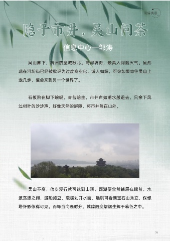 吳山不高,信步漫行就可達到山頂。西湖便全然鋪展在眼前,水